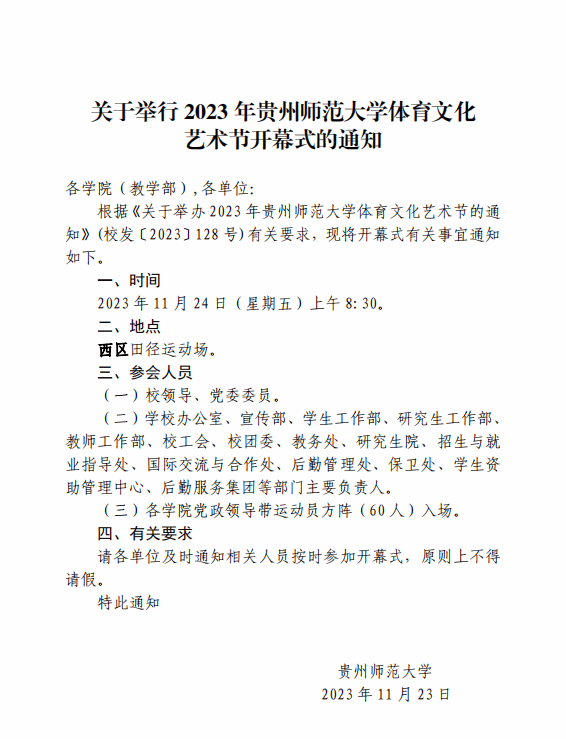 关于举行2023年yl23455永利集团体育文化艺术节开幕式的通知