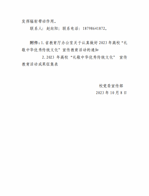 关于认真做好2023年高校“礼敬中华优秀传统文化”宣传教育活动的通知