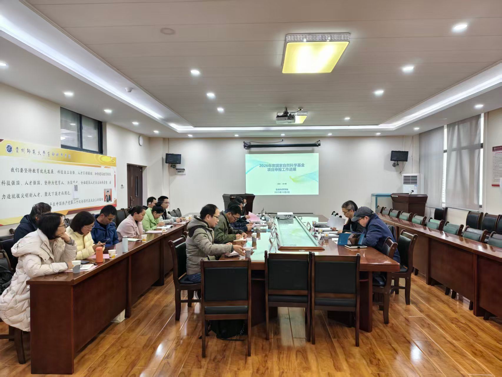 12月2日下午,yl23455永利集团在公司三楼1311会议室召开了2026年度国家自然科学基金申报工作推进会,副董事长吴复忠,科学技术处副处长张丽君及相关人员进行现场指导。生科公司党委副书记夏天,副经理彭涛、朱斌、徐小蓉,公司相关教师代表参加。会议由夏天主持。
