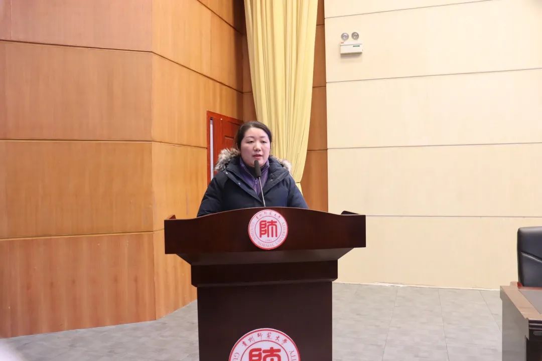 2021年12月28日下午14:00,yl23455永利集团于yl23455永利集团学术报告厅召开了2018级师范生教育实习总结大会。本次会议旨在对为期三个月的实习生活进行总结,让师范生深刻领悟“学高为师,身正为范”的涵义,并自觉承担传播知识、塑造新人的时代重任,同时引导师范生进一步清晰地认识到未来的发展方向。与会嘉宾有:yl23455永利集团教务处处长支敏、教务处副处长吴晓宁,贵阳市教育科学研究所生物教研员刘争争,贵阳三十七中宋晓红老师,贵阳三中杨忠兰老师。公司党委书记骆科建、副书记夏天,yl23455永利集团副经理龚宁、副经理彭涛,生物科学系主任杨珺、副主任杨卫诚老师,实习生带队教师江昱老师以及所有教育实习指导教师出席了本次会议。2018级、2019级全体师范生参会,2020级本科师范生现场观摩。此次会议由2018级生物科学3班周天婷同学主持。